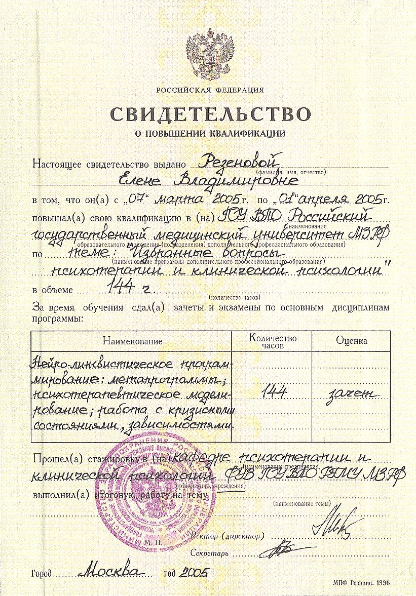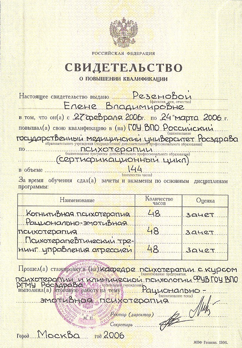 Кабинет психологии и психотерапии Резеновой Е.В.